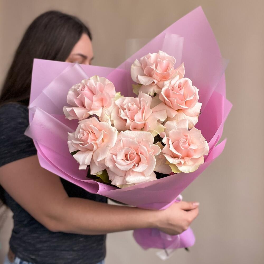 Нежный розовый букет из 7 штук французских роз. Изысканные цветы с легким ароматом наполнят пространство теплом и уютом. Каждый цветок словно символ любви и нежности, призванный украсить особенный момент вашей жизни. Букет станет замечательным подарком для важного человека или для создания атмосферы романтики и элегантности.