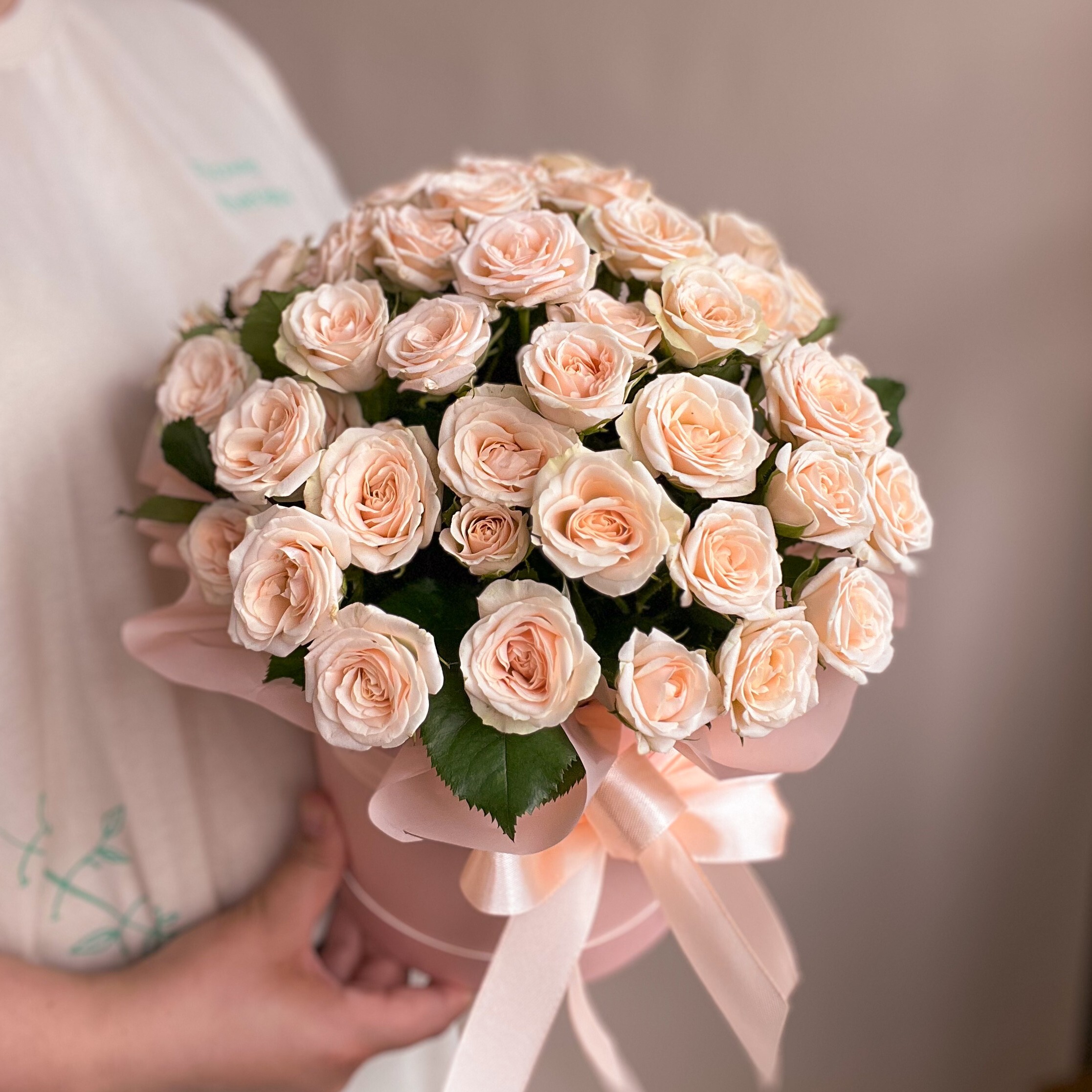 Шляпная коробка с девятью кремовыми кустовыми розами – это настоящая симфония нежности и элегантности. Каждый цветок словно олицетворяет утонченность и красоту, а их кремовый оттенок дарит легкость и гармонию. Эти розы идеально подходят как для романтического жеста, так и для особых торжеств, таких как свадьбы или юбилеи.